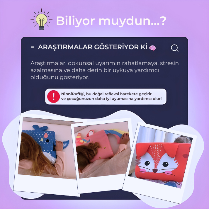 Evet. Her NinniPuff yastığı, uyku uzmanlarıyla birlikte geliştirildi ve özellikle hassas, huzursuz ya da kaygılı çocukların rahatlamasına yardımcı olmak için tasarlandı.